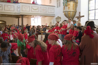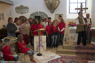 Ein jeder der den Gottesdienst besuchte bekam ein Engel-Kärtchen. Die Mitarbeiter bekamen auch ein kleines Dankeschön. Mit dem Lied .Shalom. ging eine erfolgreiche und gelungene Dorffreizeit zu Ende die ständig unter Gottes gutem Segen stand.